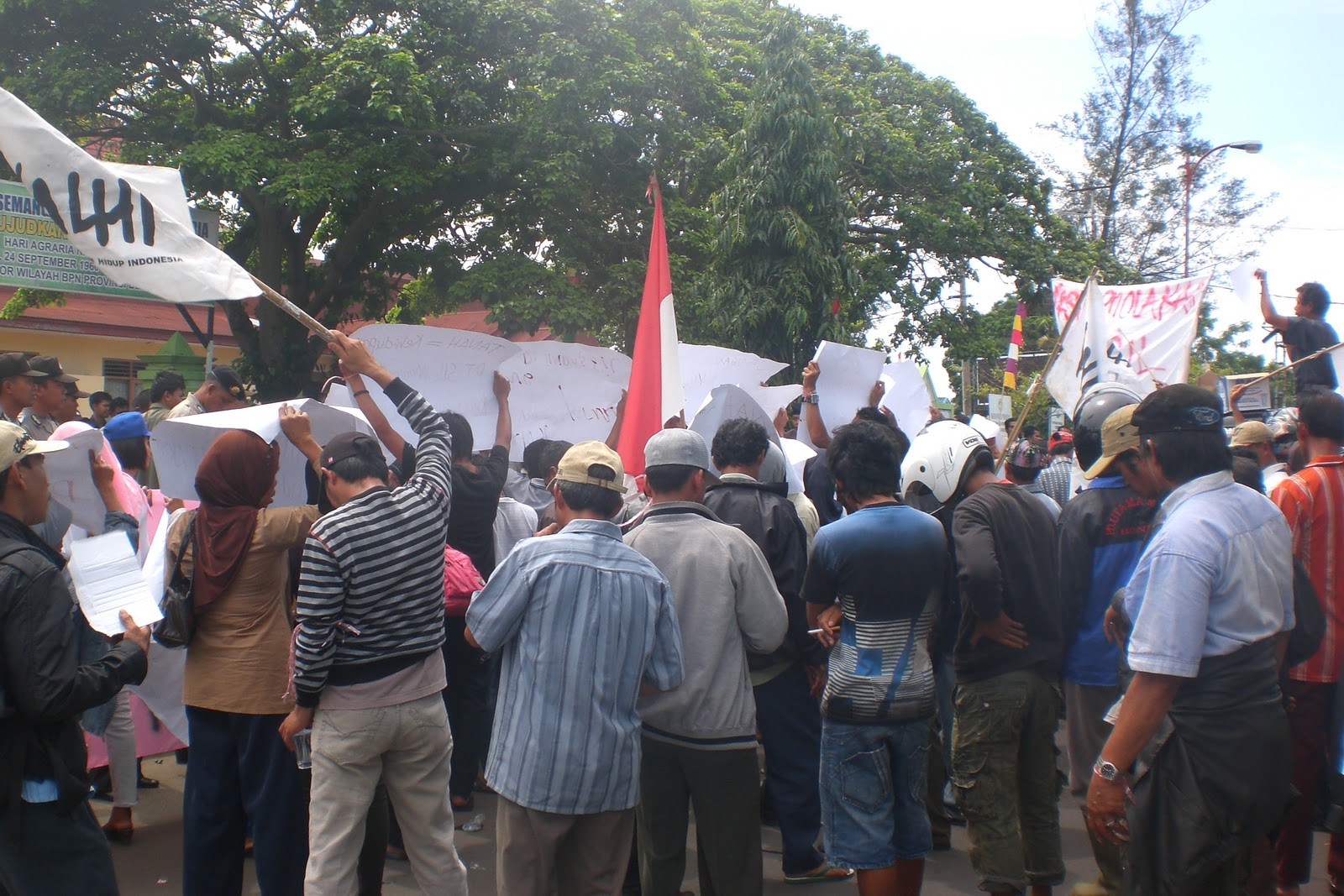 BENGKULU- Ratusan warga dari 6 Desa di Kabupaten Seluma,menggelar aksi demontrasi ke Kantor Wilayah(Kanwil) Badan Pertanahan Nasional(BPN)Provinsi Bengkulu Jl.Basuki Rahmat Kota Bengkulu.Aksi ratusan warga yang mengatasnamakan Forum Petani Berdatu(FPB),pukul 10.00 WIB kamis(17/11)dalam rangka pencabutan Hak Guna Usaha(HGU) PT.Sandabi Indah Lestari(SIL).