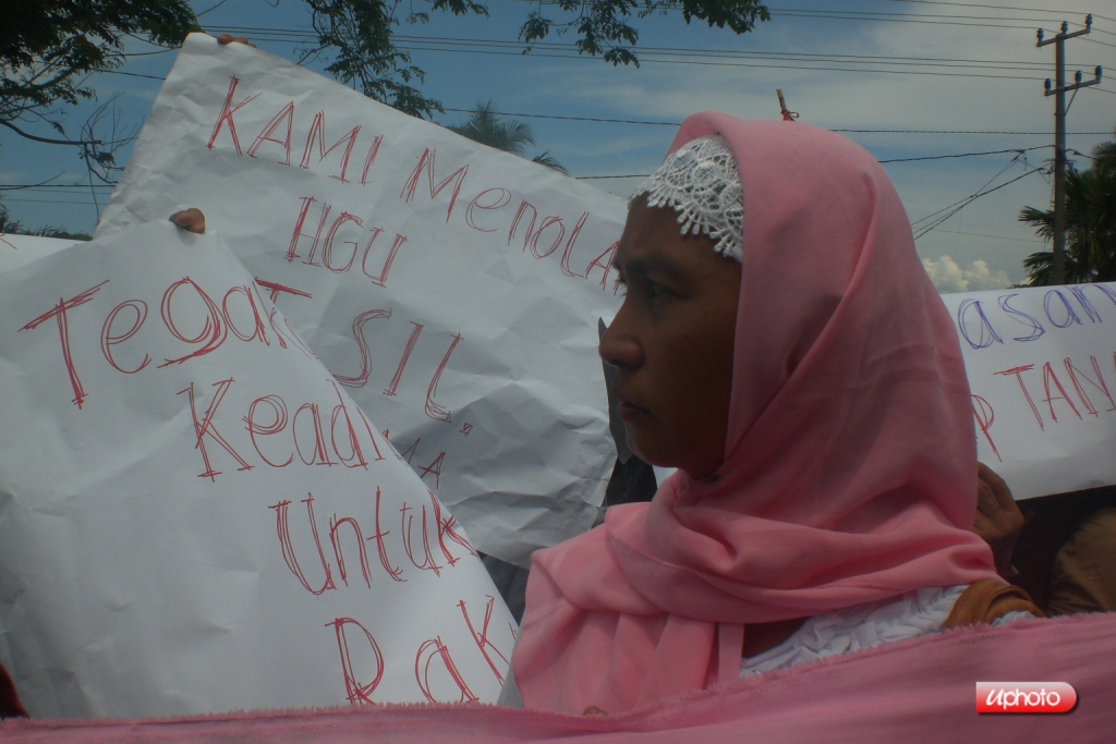 Dalam orasinya, salah seorang warga pemilik tanah, Fatmawati, mengatakan, “PT.SIL selama ini tidak memberikan dampak apa - apa, yang ada malah, rakyat semakin menderita, rakyat yang biasa kerja dilahan sendiri, karena lahan mereka dirampas oleh PT.SIL, rakyat tidak punya apa - apa lagi, jadi jangan terkejut, kalau tingkat kejahatan meningkat, karena masyarakat yang punya lahan, lahannya telah dirampas oleh perusahaan, lantas bagaimana suatu daerah bisa damai sejahtera kalau seperti itu, selama ini rakyat selalu dibuat menderita, rakyat dilarang panen di lahan sendiri, apakah ini hukum.!!, tolong.! Hukum ditegakkan bukan hanya untuk pengusaha, tapi juga untuk kami rakyat pemilik lahan, jadi tolong, kembalikan lahan milik kami.!!” ujar ibu fatmawati yang membakar semangat para demonstran ini.